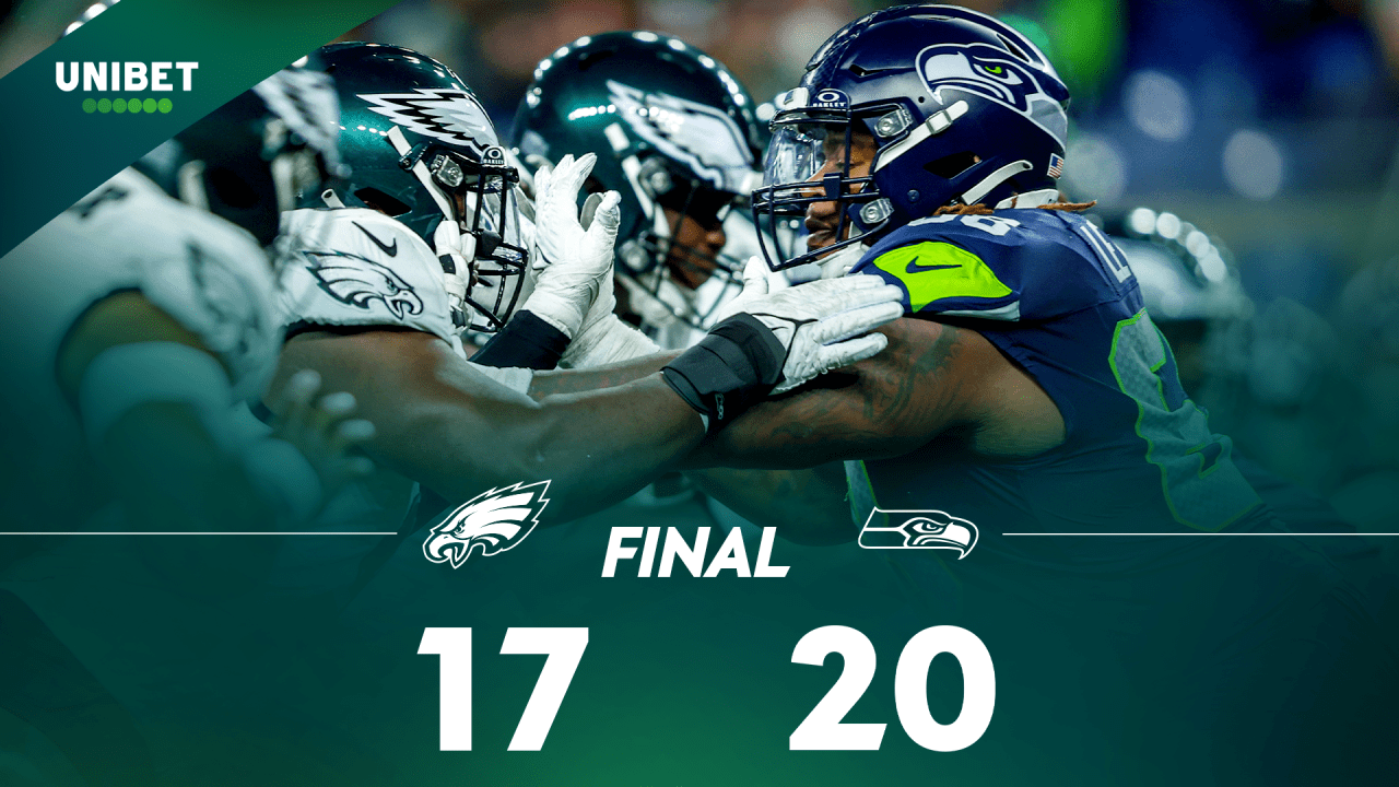 - The Eagles' defense forced a punt to end the half, the second Seahawks punt of the game. A false start penalty on third-and-1 at the Seattle 48-yard line pushed the hosts back. Drew Lock then threw an incompletion on the right sideline.