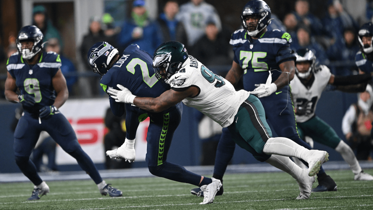 The Eagles held quarterback Drew Lock, who started for the injured Geno Smith, to 116 passing yards until the final two minutes of the game. On the game-winning drive, Lock threw for 92 yards with passes of 18 yards, 34 yards, and a 29-yard touchdown to rookie wide receiver Jaxon Smith-Njigba.